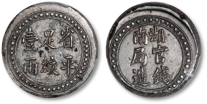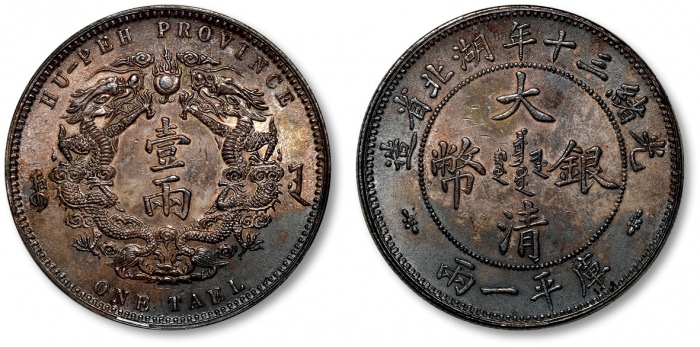 寶武局光緒通寶機製方孔銅幣。PCGS中评鑑最高分,细节出眾,光泽亮丽。全无经手痕跡,古钱专家的必然之选。虽然之前被称為样币,很可能因為 CCC 形容此版為"外国打铸的机製币",但可能不是试铸发行。虽然版别起源神祕,但若是样币的话发行量未免过多,单是PCGS 的评分报告中已有 23 枚。此外,Hsu 亦将此版归类為流通打铸。</em></em>CHINA. Hupeh. Brass Cash, ND (1898). Kuang-hsu (Guangxu). PCGS MS-64.Hsu-181. Tied for the finest of the type yet certified by PCGS, the present example delivers a boastful amount of luster along with strong details. Escaping really any evidence of handling, this piece is perfect for the specialist in Cash issues. Though previously called a pattern issue, likely arising from the placement of this piece with "foreign-made machine mint products" in CCC, it is more likely not a trial striking. Though elusive, there appears to be too many produced to be patterns, with 23 on the PCGS population report. Additionally, Hsu places this coin as a regular circulation strike along with other contemporaneous Cash.</em>From the Kenneth Bressett Collection.