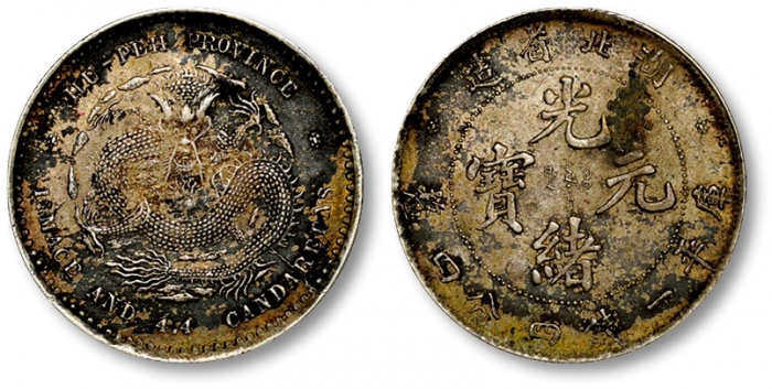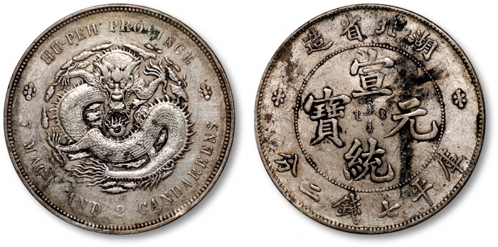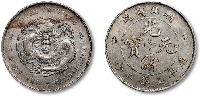寶武局光緒通寶機製方孔銅幣。令人印象深刻的一枚,PCGS中仅两枚更高分,黄铜色泽通透诱人。铸压锐利,几乎无经手及接触痕跡。出眾的一枚,铜币藏家不二之选。CHINA. Hupeh. Brass Cash, ND (1898). Kuang-hsu (Guangxu). PCGS MS-63.Hsu-182. An impressive example that is surpassed by only two others of the type on the PCGS population report, this Cash retains a brassy brilliance that appeals on many levels. The strike is sharp, and almost no evidence of handling or contact is seen. An impressive specimen that is certain to drive much attention from the specialists in Cash types.