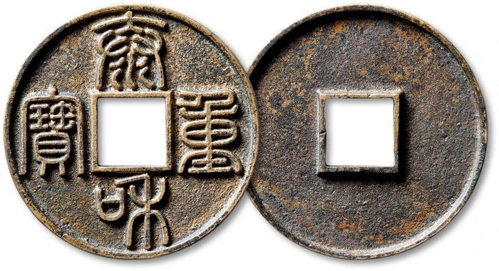 “泰和重宝”折十篆书合背一枚,直径:43.4mm,字口清晰,包浆醇厚熟美,极美品