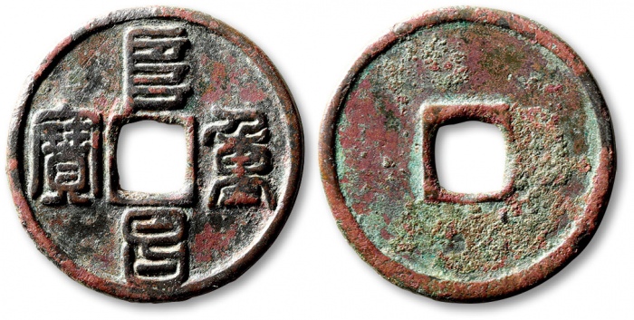 金“泰和通宝”楷书折二型一枚,直径:28.7mm,铸相精整,方圆廓正,为金章宗官炉所铸,珍罕,公博评85