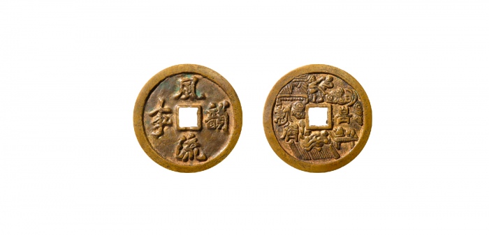 民国风流韵事明皇御影大型方孔花钱,华夏评级 极美82,7.62*0.43cm 120g