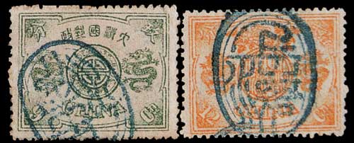 销上海1897年8月17日大圆戳,加盖字体“壹”字部分漏盖,较少见,上中品