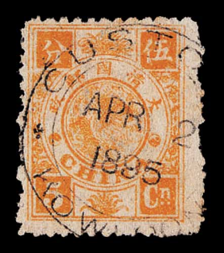 销上海1897年8月17日大圆戳,加盖字体“壹”字部分漏盖,较少见,上中品