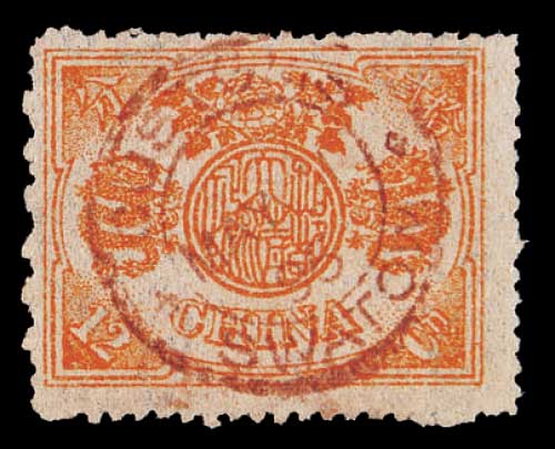 销上海1897年8月17日大圆戳,加盖字体“壹”字部分漏盖,较少见,上中品