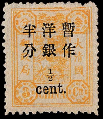 慈禧寿辰加盖小字改值邮票半分/3分