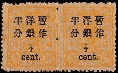 慈禧寿辰加盖小字改值邮票半分/3分