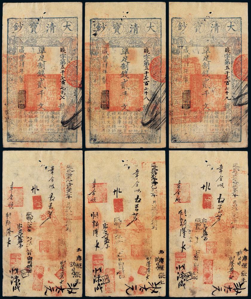 关于咸丰四年大清宝钞二千文3枚连号的评论