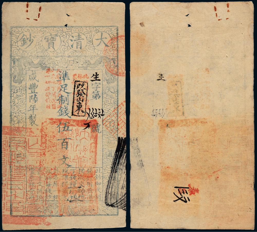 关于咸丰六年大清宝钞伍百文1枚的评论
