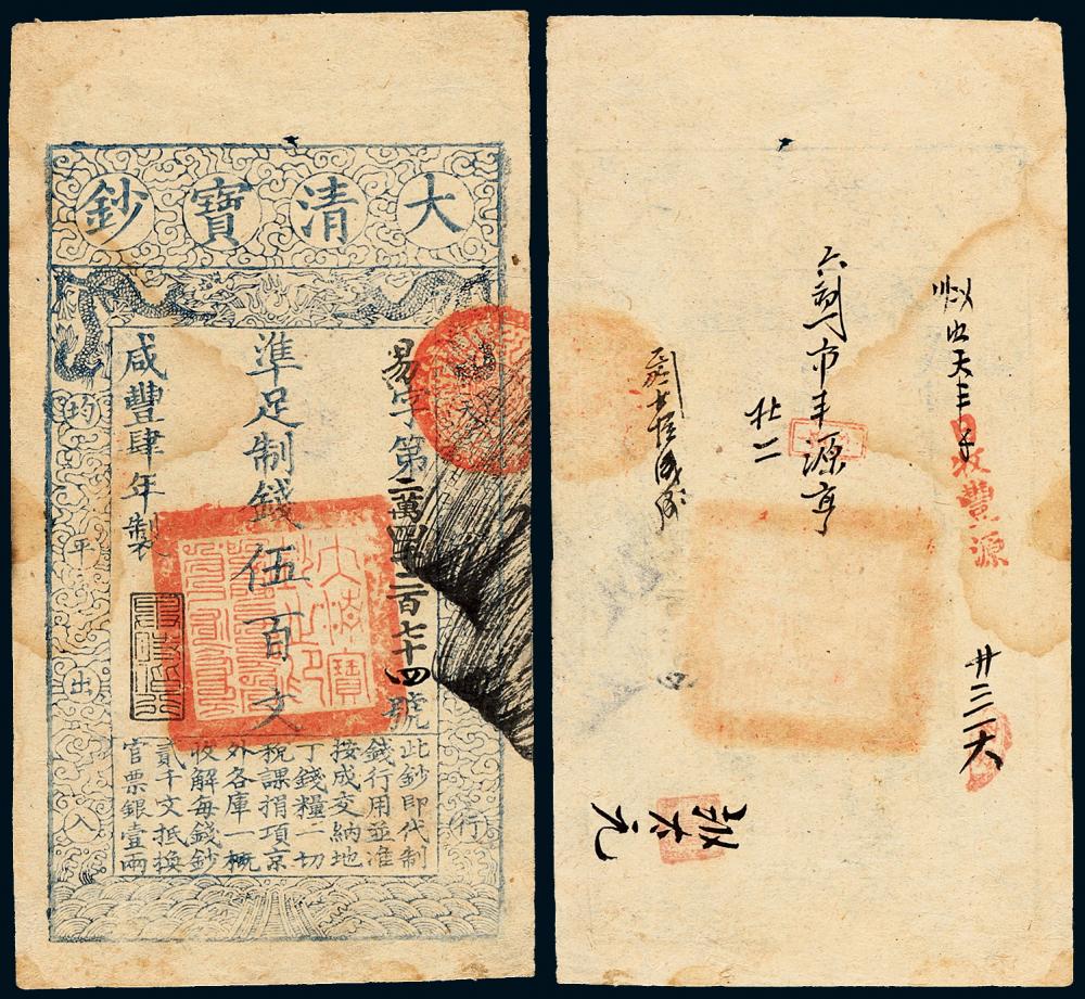 关于咸丰四年大清宝钞伍百文1枚的评论