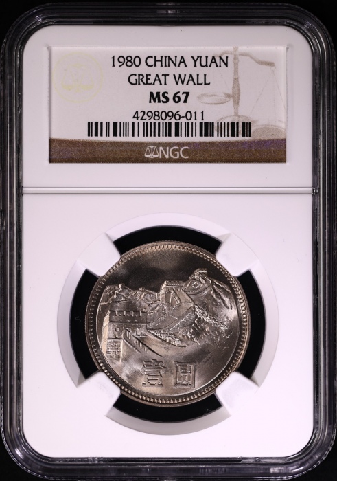 第200047号:1980年普制长城1元 NGC MS67(无砖版 老标),估价:3500--5500