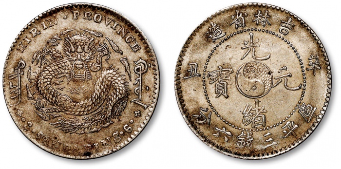 清吉林省造“辛丑”光绪元宝库平三钱六分银币一枚,打制规范清晰,底光柔亮,龙鳞挺拔,灰色包浆,近未使用至完全未使用品
