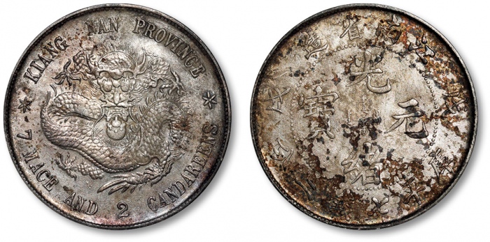这枚江南戊戌一角龙磨损自然,银色也正,真币一枚,但可惜品 ...