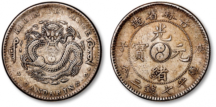 清吉林省造“庚子”光绪元宝库平七钱二分银币一枚,中心太极,打制规范清晰,深灰色包浆,极美品