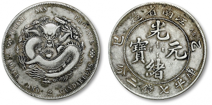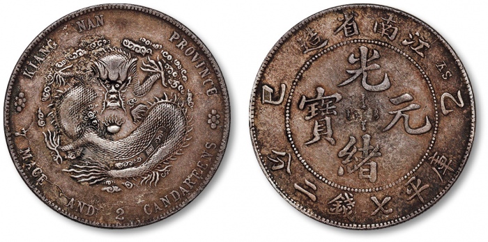 清江南省造“乙巳”光绪元宝库平七钱二分银币一枚,整体清晰,灰色包浆,状态自然,极美品