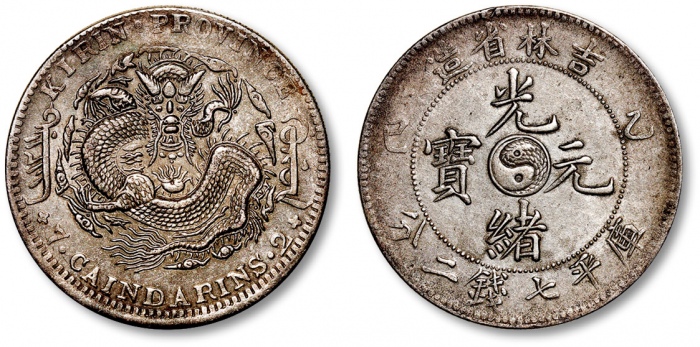清吉林省造“乙巳”光绪元宝库平七钱二分银币一枚,打制规范,龙鳞清晰,深灰色包浆,带底光,极美至近未使用品