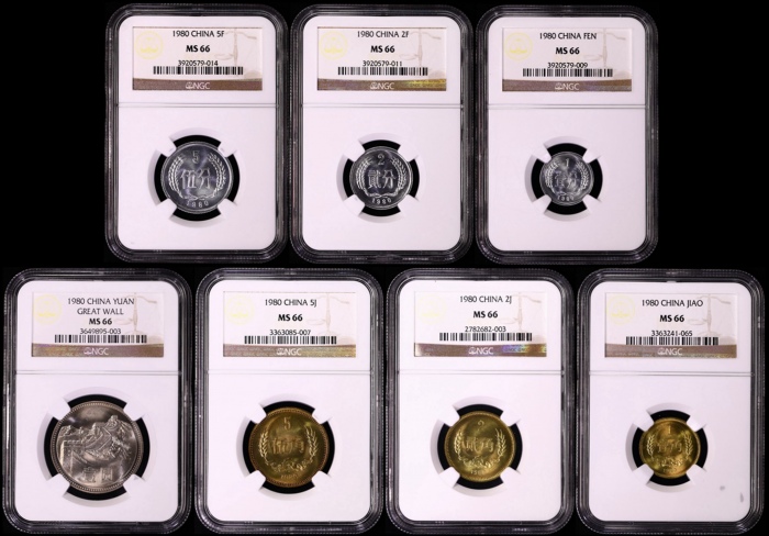 第200014号:1980年套装流通硬币 NGC MS66(蓝皮本 老标),附带原包装。估价:8000--16000