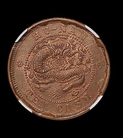 关于1902年湖南省造光绪元宝十文铜币一枚,NGC MS62BN,此种入盒极少,为目前NGC公司评级分数第一名,并且唯一一枚MS级评分的评论