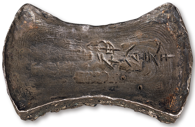 南宋“京销铤银”六戳二十五两银锭一枚,重:724.7g,锭形优美,包浆醇厚, 中乾 XF(CCG20017162)