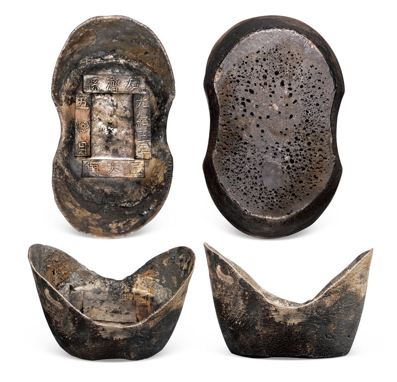 第200401号:清代四川“钰源炉”十两圆锭 GBCA MS61,重量:360克,清代四川省商铸银铺锭,此银炉名甚少出现。此锭铸造非常规整,字口犀利,厚重老包浆,蜂窝自然。民国时期陈氏旧藏,流传有序。估价:20000--40000 ...