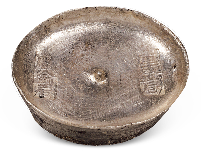 第200401号:清代四川“钰源炉”十两圆锭 GBCA MS61,重量:360克,清代四川省商铸银铺锭,此银炉名甚少出现。此锭铸造非常规整,字口犀利,厚重老包浆,蜂窝自然。民国时期陈氏旧藏,流传有序。估价:20000--40000 ...