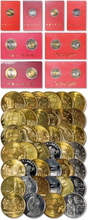 现代流通纪念币一组共二十六枚,含:建国五十周年、政协成立五十周年、澳门特别行政区成立、邓小平诞辰100周年等等;沪上藏家出品,品种繁多,品相不等,敬请预览