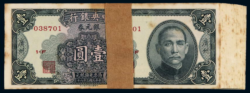 关于民国三十八年中央银行中华书局版银元券广州壹圆一百枚连号,八五成至九成新的评论
