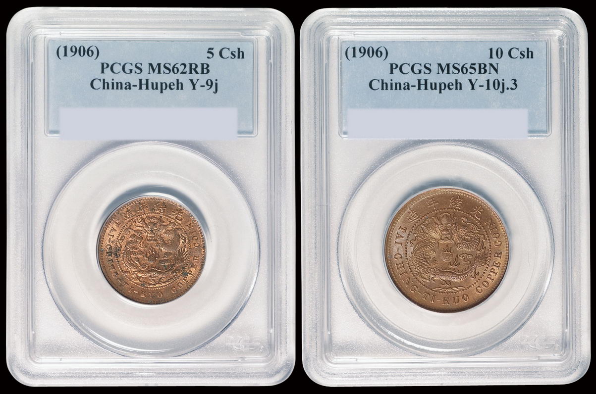 关于1906年户部丙午大清铜币中心“鄂”十文、五文各一枚,PCGS MS65BN、MS62RB的评论