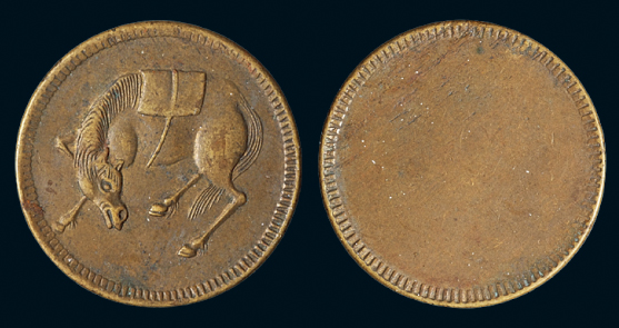 1912民国四川省造马兰回首马十文马单面铜币(黄铜),PCGS 29805402 MS62 ,2.8*0.15cm,2.0g