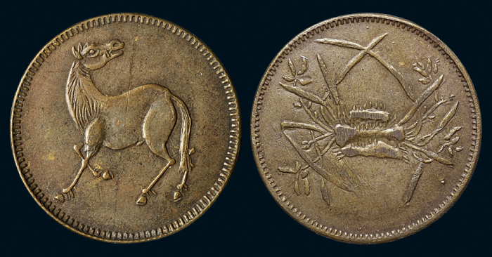 1912民国四川省造马兰回首马十文马单面铜币(黄铜),PCGS 29805402 MS62 ,2.8*0.15cm,2.0g