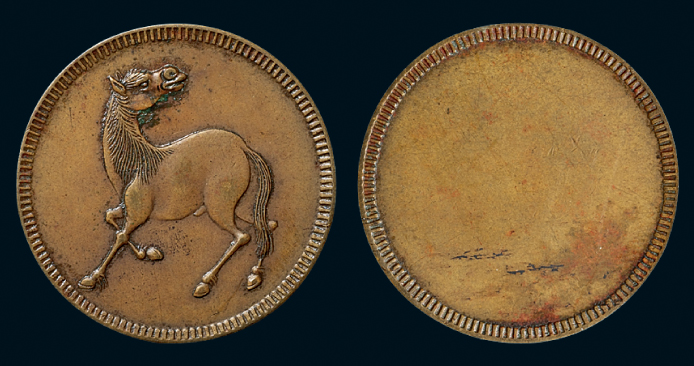 1912民国四川省造马兰回首马十文马单面铜币(黄铜),PCGS 29805402 MS62 ,2.8*0.15cm,2.0g