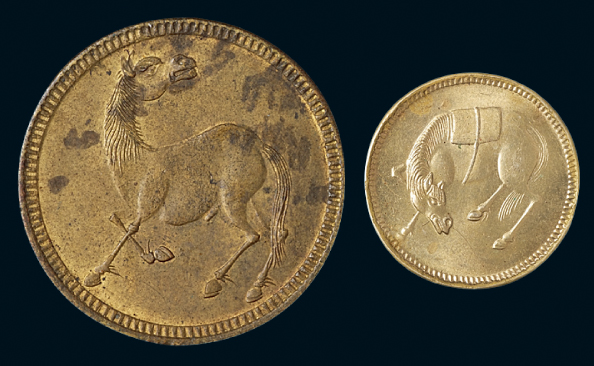 1912民国四川省造马兰回首马十文马单面铜币(黄铜),PCGS 29805402 MS62 ,2.8*0.15cm,2.0g