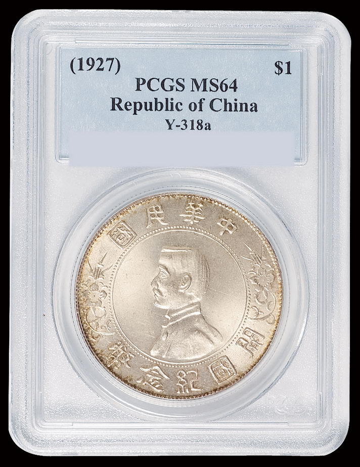 1927年孙中山像开国纪念壹圆银币一枚,PCGS MS64