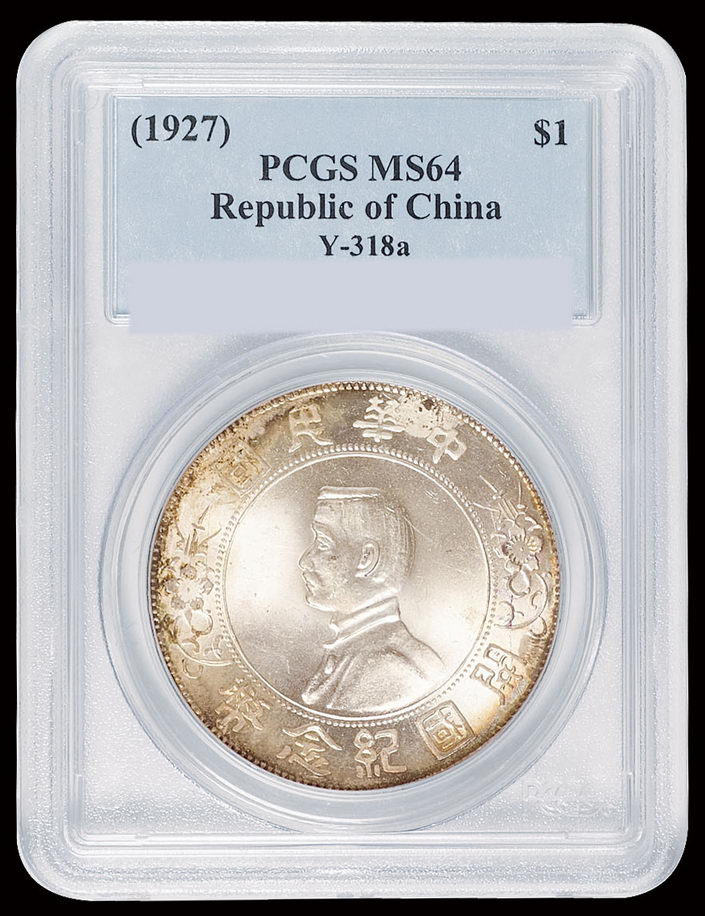 1927年孙中山像开国纪念壹圆银币一枚,PCGS MS64