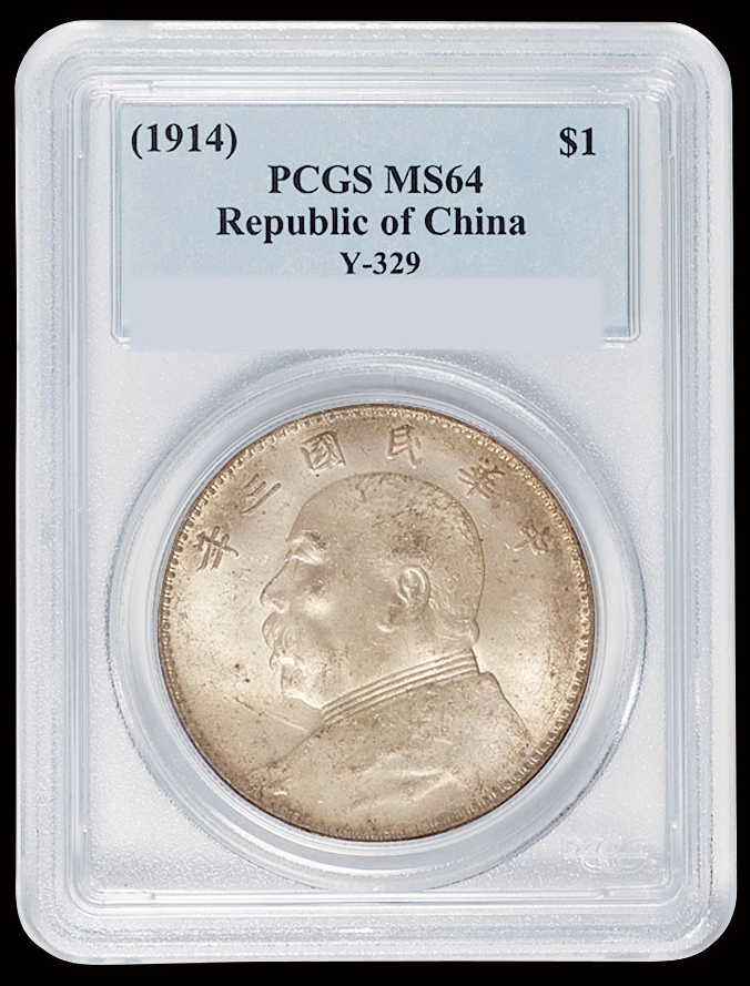 第200404号:1914年民国三年袁世凯像壹圆 西北军阀版 PCGS XF40,自然流通磨损包浆,军阀版难得有分。估价:20000--30000