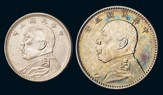 关于民国三年袁世凯像贰角、壹角银币各一枚,贰角一枚类镜面光泽,壹角深打,品相均佳,完全未使用品的评论