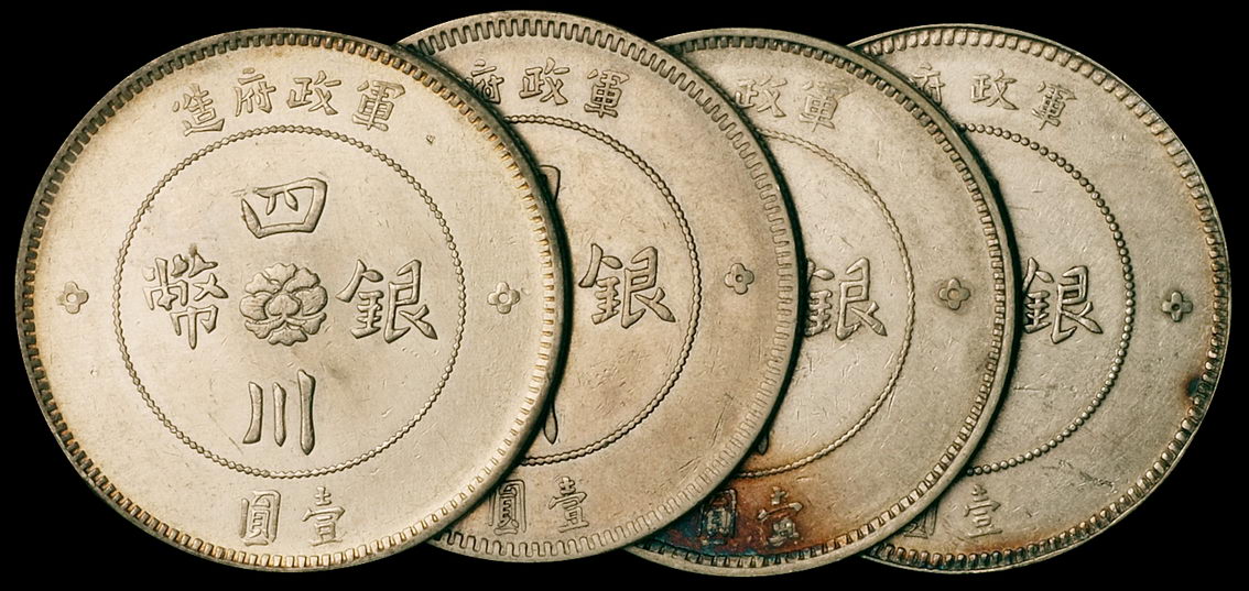 关于民国元年军政府造四川银币壹圆四枚,其中一枚为“小点金”,极美至近未使用品的评论