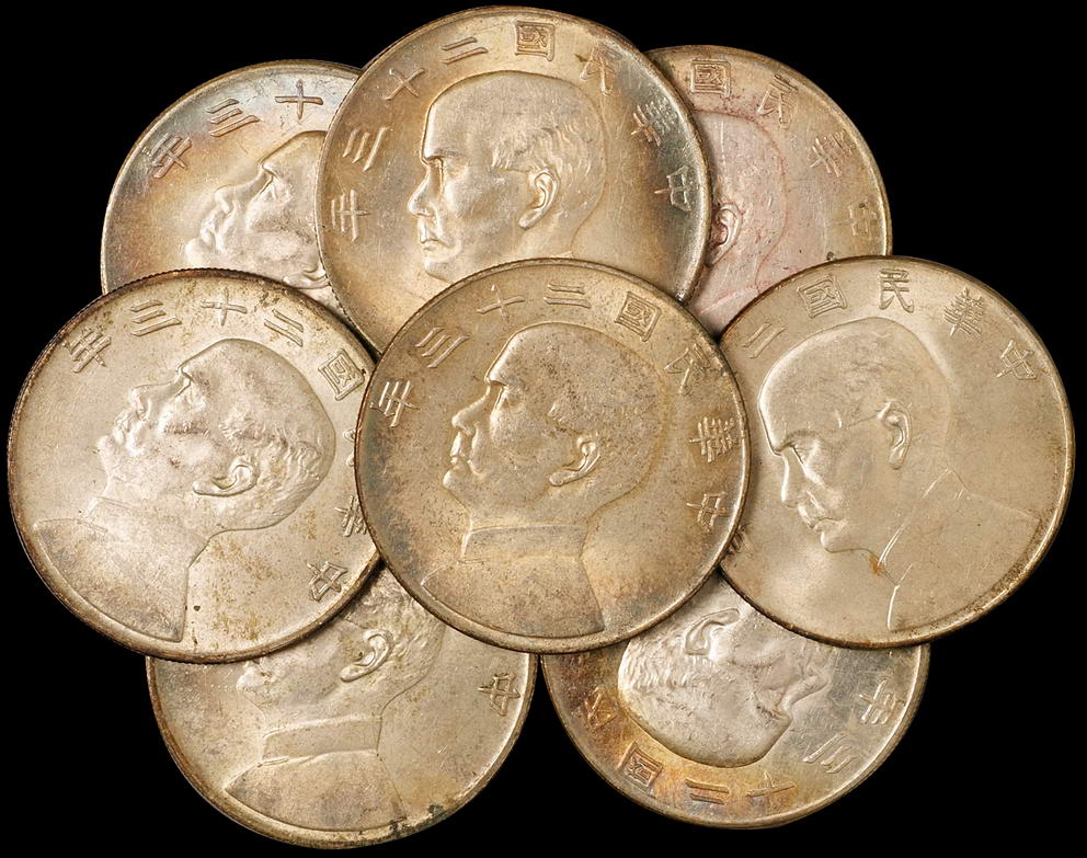 关于民国二十三年孙中山像背帆船壹圆银币八枚,均自然五彩包浆,极美至近未使用品的评论