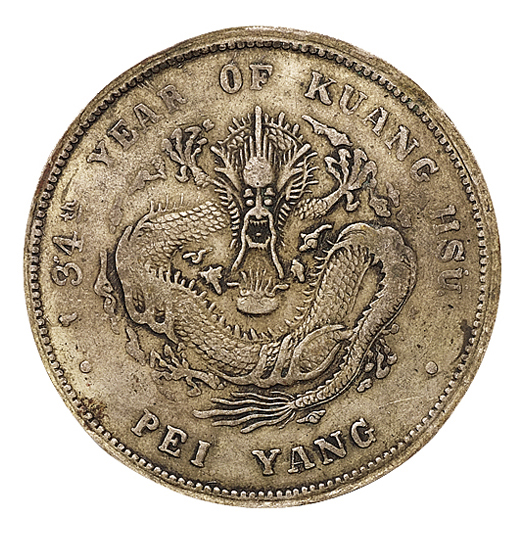 关于光绪三十四年北洋造光绪元宝库平七钱二分银币一枚,“3·4”中心有点,直径40毫米,尺寸较大,版式稀见,美品的评论
