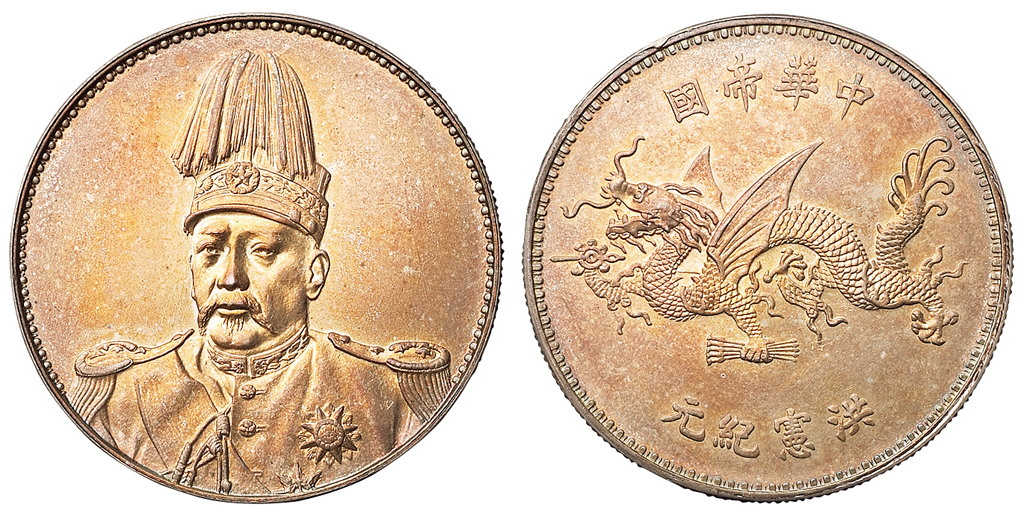 关于1916年袁世凯像中华帝国洪宪纪元飞龙银币一枚,类镜面深打,金铜色氧化,品相完美,罕见,完全未使用品的评论