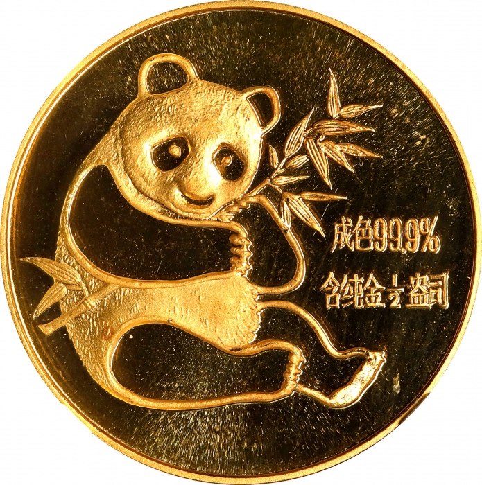 CHINA. Gold Medallic 1/2 Ounce, 1982. Panda Series. NGC Unc Details--Rim Damage. Fr-B5; KMX-MB10; PAN-3A. This elusive first year of issue undenominated type, this wholesome example delivers a full strike and sharp cameo contrast, and provides an affordabl ...