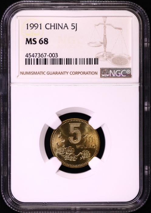 第200277号:1991年5角工作币 NGC MS67,估价:15000--20000