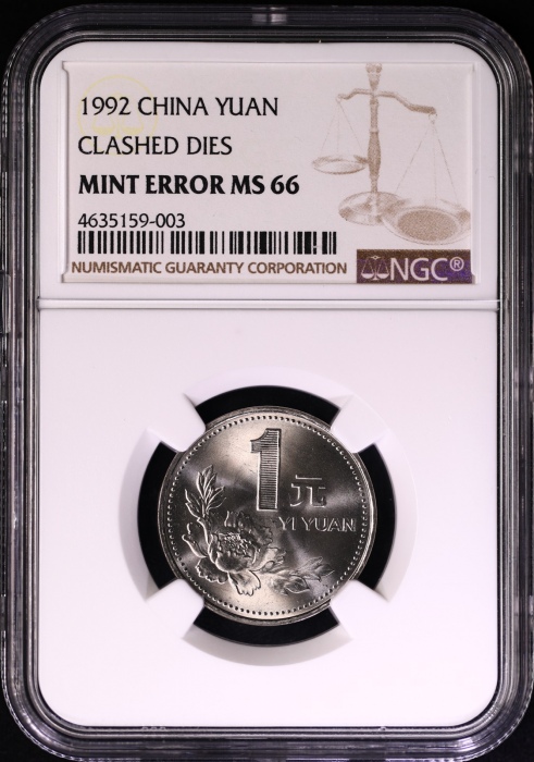 第200281号:1992年普制1元 NGC MINT ERROR MS66,撞模痕印待估