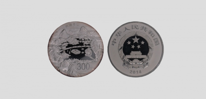 2014中国西湖全景纪念币面值300元银币,NGC 6337182-001 PF69 ,9.8*2.0cm,1000g