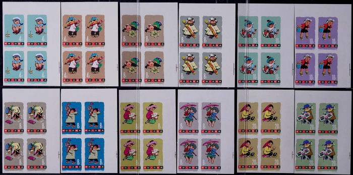 1963年特54儿童无齿新票全套右上直角边四方连,发行无胶未贴,上品
