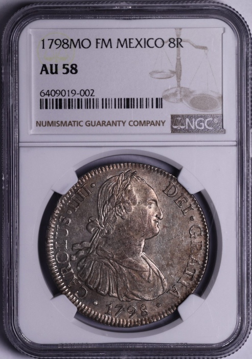 (ca. 1784) New York. Ephraim Brasher (EB) Regulated Brazil 1754-B 6400 Reis. AU-53 (PCGS).181.0 grains. Neatly plugged at center from back to front, with a substantial gold pin pushed through a drilled hole and peened flat to the left at central reverse. ...
