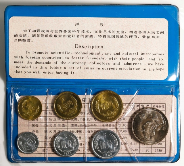 1980年中华人民共和国流通硬币普制套装 完未流通 CHINA. Mint Set (7 Pieces), 1980. Shanghai Mint.