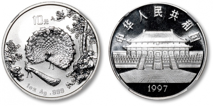 1997-P年100元鉑金。麒麟系列。发行量500枚。麒麟系列裡最惹人垂涎的其中一枚。铸工高超,细节纤毫毕现,栩栩如生。近完美的珍品,无斑点、氧化或起雾。CHINA. Platinum 100 Yuan, 1997-P. Unicorn Series. PCGS PROOF-69 Deep Cameo.Fr-B111; KM-1034; NPB-40A. Mintage: 500. One of the most desired issues of the entire Unicorn series, this example provides amazing strike and details illuminated by the deep cameo contrast. Approaching perfection, this piece can boast avoiding the ugly spotting, haze, or marking that is sometimes seen on these modern bullion commemoratives.