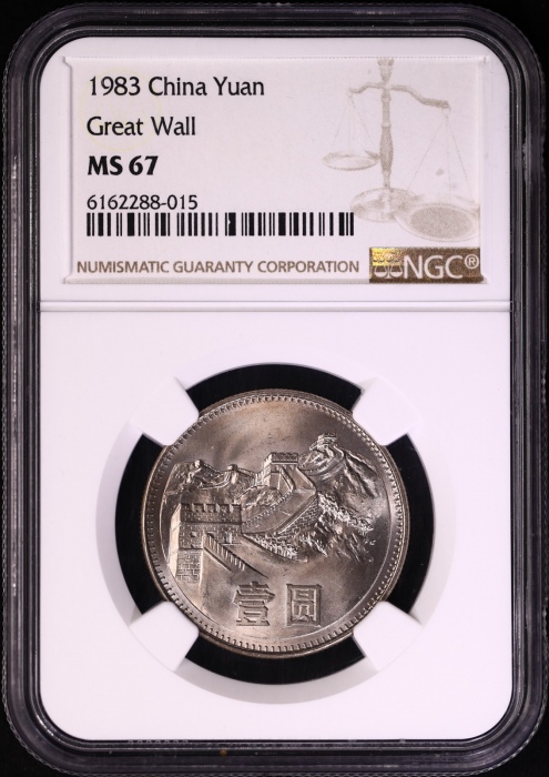 第200175号:1983年普制长城1元 NGC MS67(老标),原始光泽,底板丝滑。估价:2000--4000