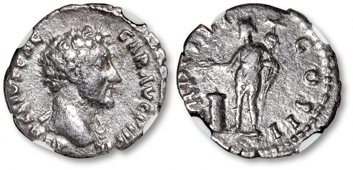 公元161-180年罗马帝国“皇帝奥里利乌斯像”迪纳里银币一枚,NGC VF(4972149-008)