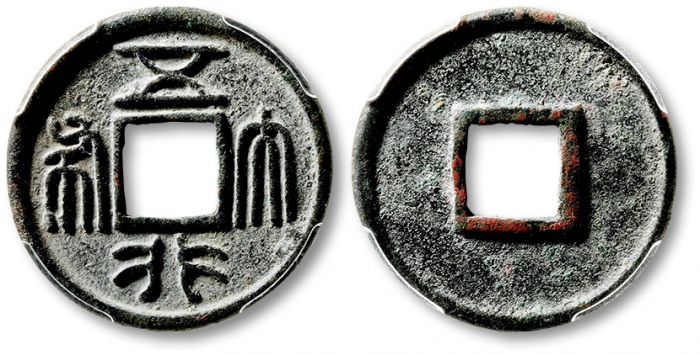 NORTHERN ZHOU: Anonymous, 557-581, AE cash (4.21g), H-13.32, seal script, yong tong wan guo (everlasting circulation in ten thousand kingdoms), EF. Issued in 579 AD by Emperor Xuan. Its nominal weight was 12 zhu, and the coin was meant to be equivalent to ...